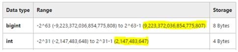 To resolve this issue, we need to find a way to change the data type in SQL to accept value over 2 147 483 647.